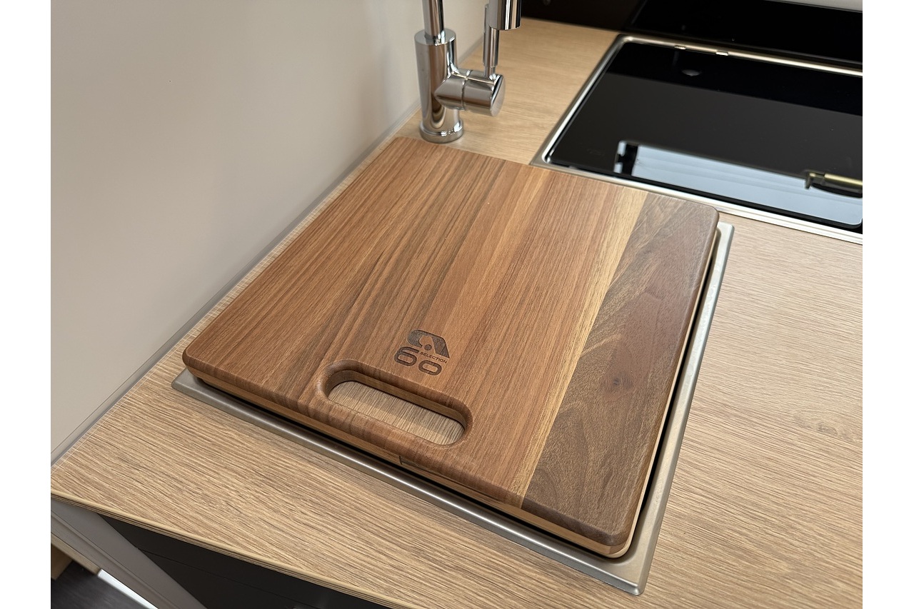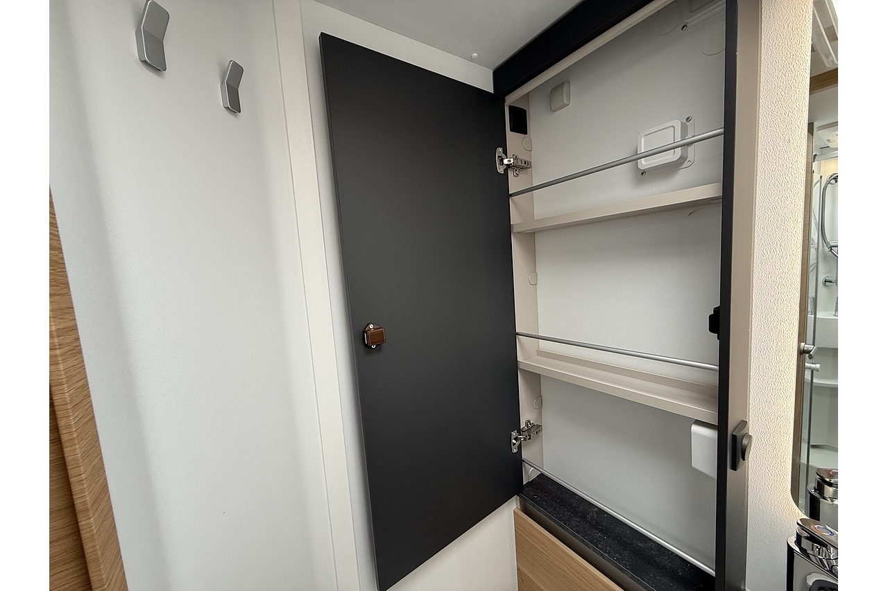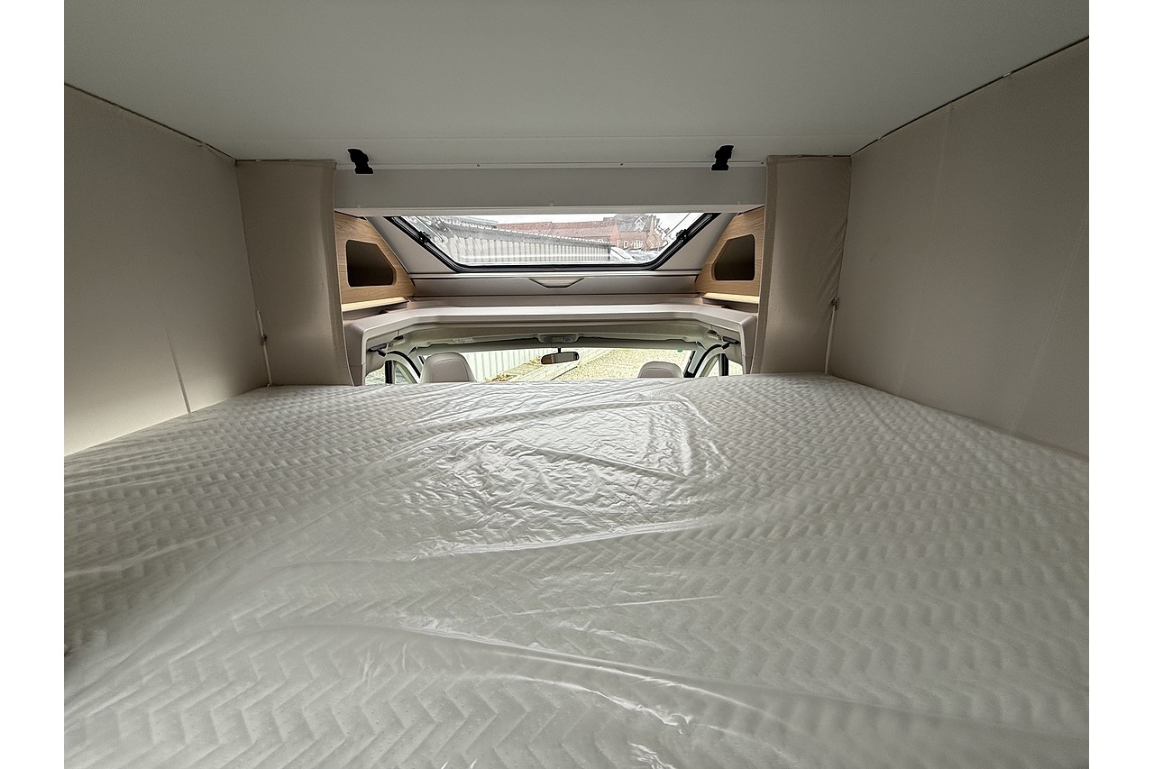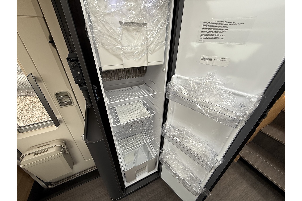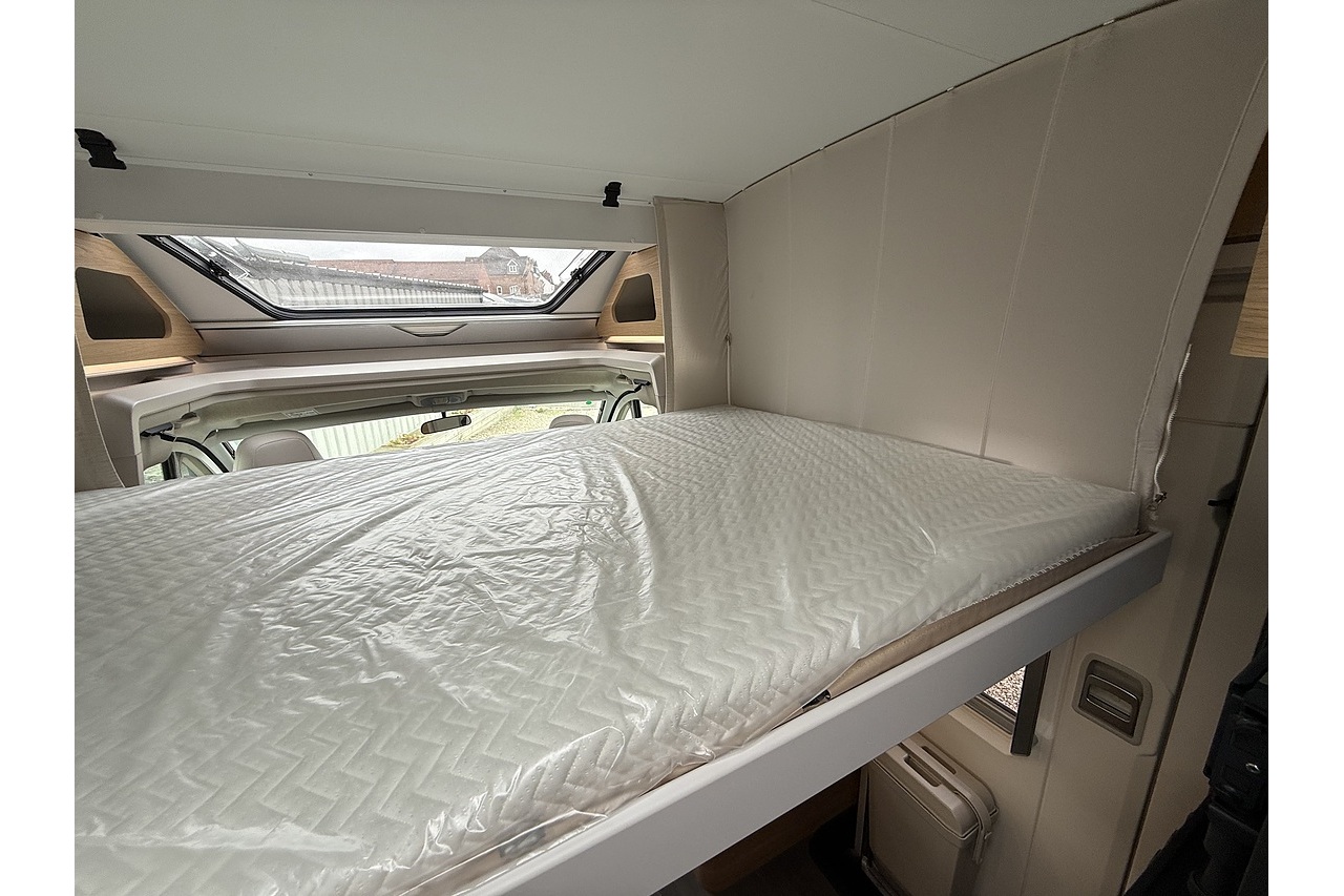 Comfortable Sleeping Arrangements – Twin single beds at the rear (convertible into a large double) and an electric drop-down bed over the lounge for extra sleeping capacity.