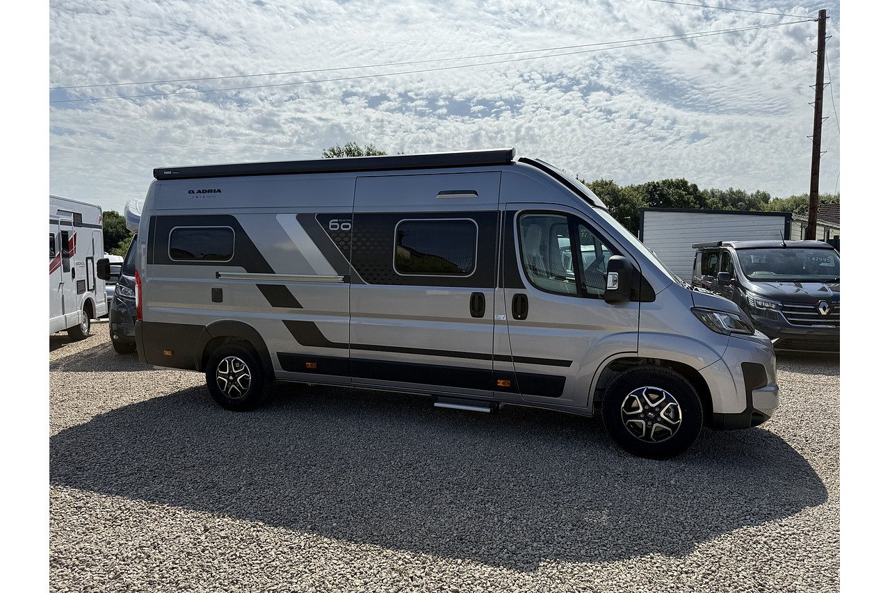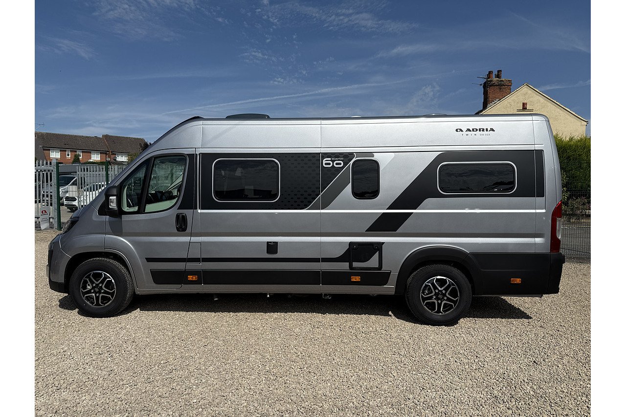 he Adria Twin 640 SGX 60th Anniversary Edition is a special limited edition model that marks six decades of Adria’s innovation and excellence. Built on the latest Fiat Ducato chassis, this premium campervan combines cutting-edge design with enhanced features for the ultimate travel experience.