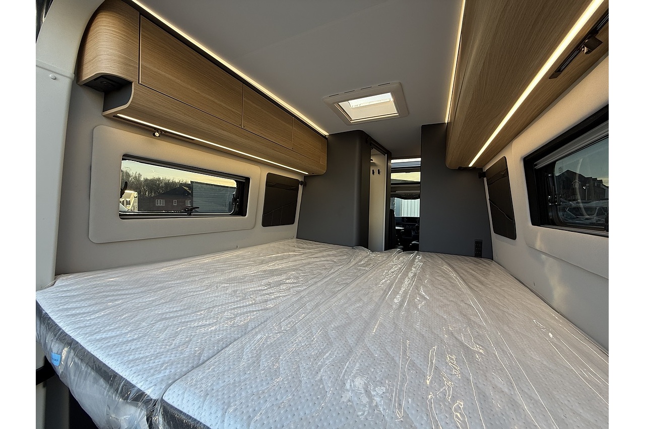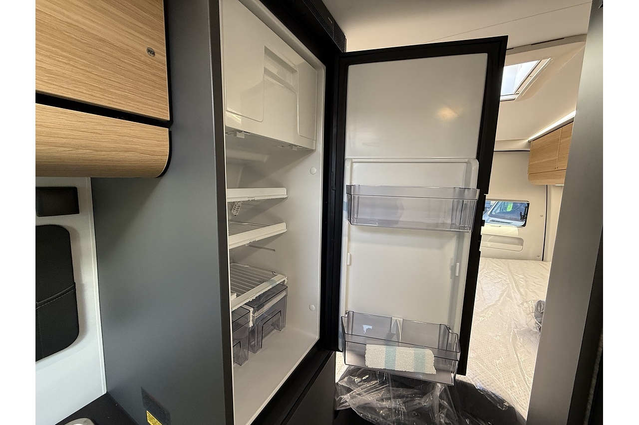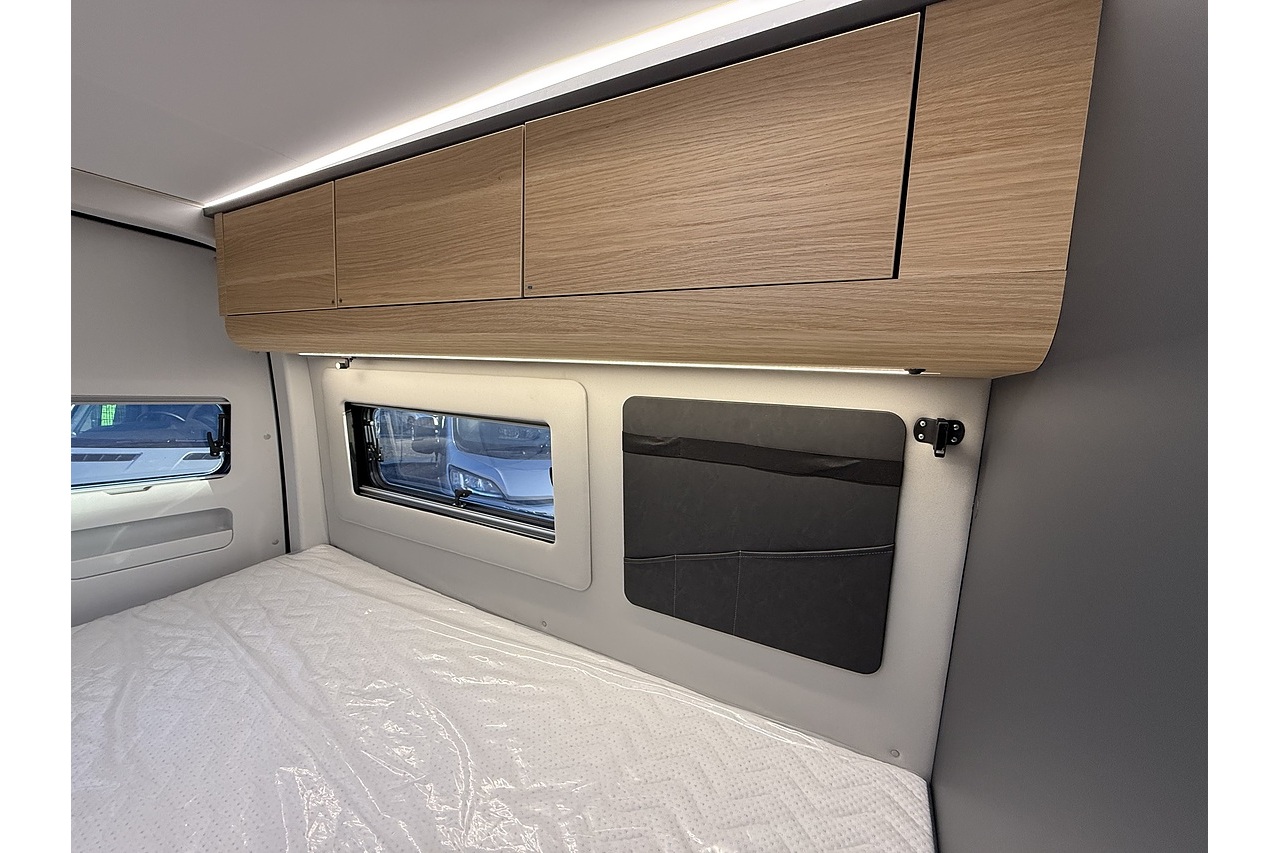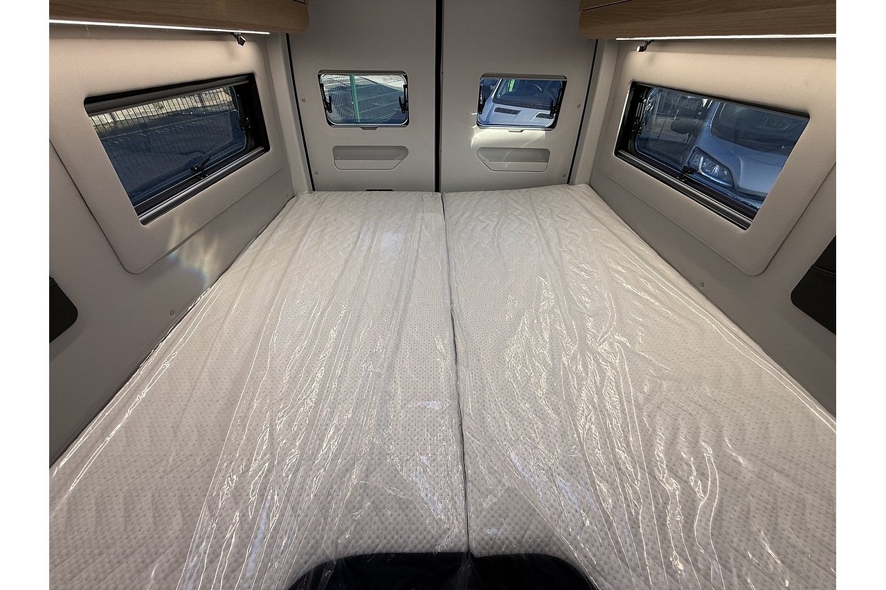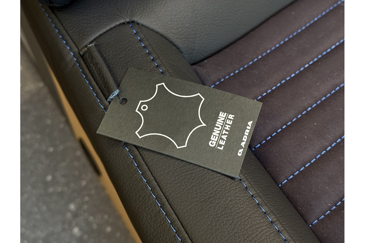 At the rear, the SLB layout features longitudinal twin single beds, offering superior comfort and access. These can be easily combined to create a large king-size bed, making the layout ideal for couples who want flexible sleeping arrangements. Premium finishes, smart storage and Adria’s modern styling give the interior a luxurious and open feel.