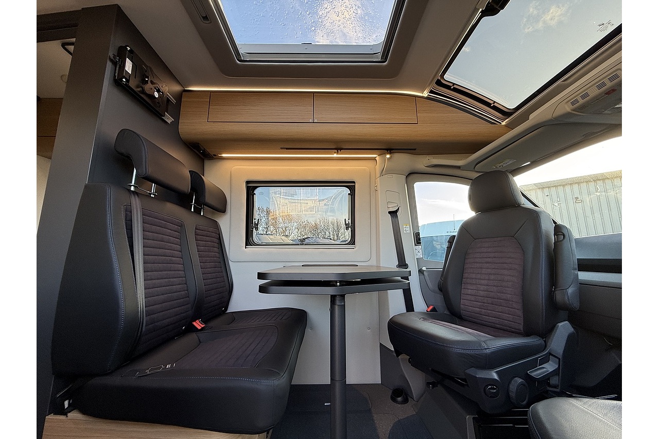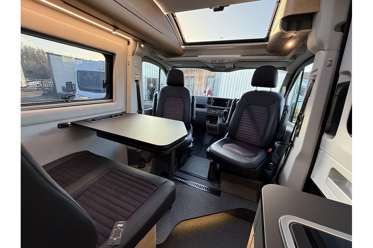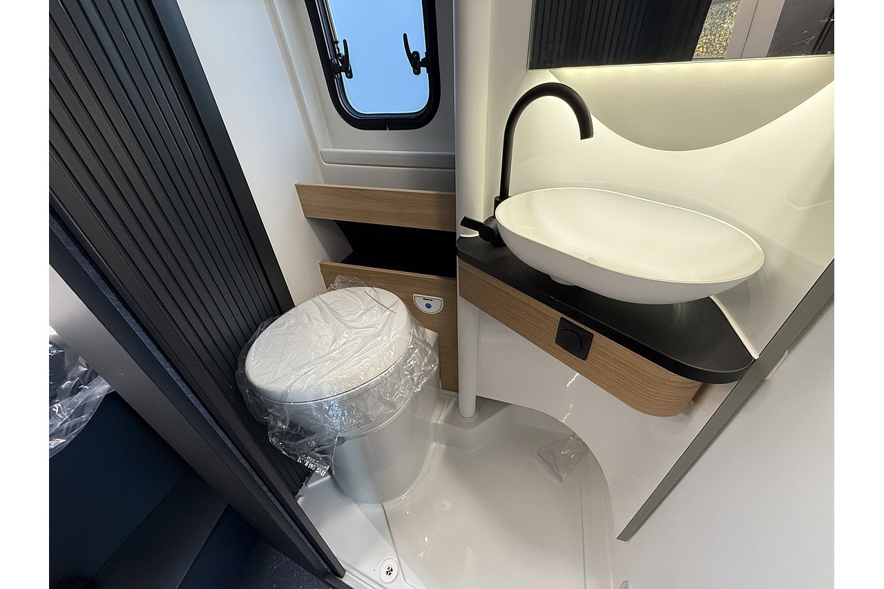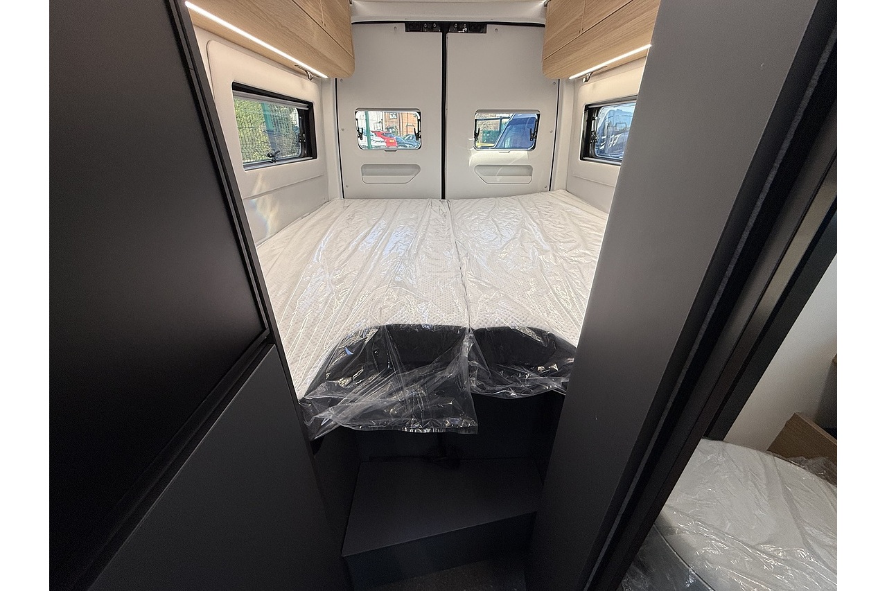 At the rear, the SLB layout features longitudinal twin single beds, offering superior comfort and access. These can be easily combined to create a large king-size bed, making the layout ideal for couples who want flexible sleeping arrangements. Premium finishes, smart storage and Adria’s modern styling give the interior a luxurious and open feel.