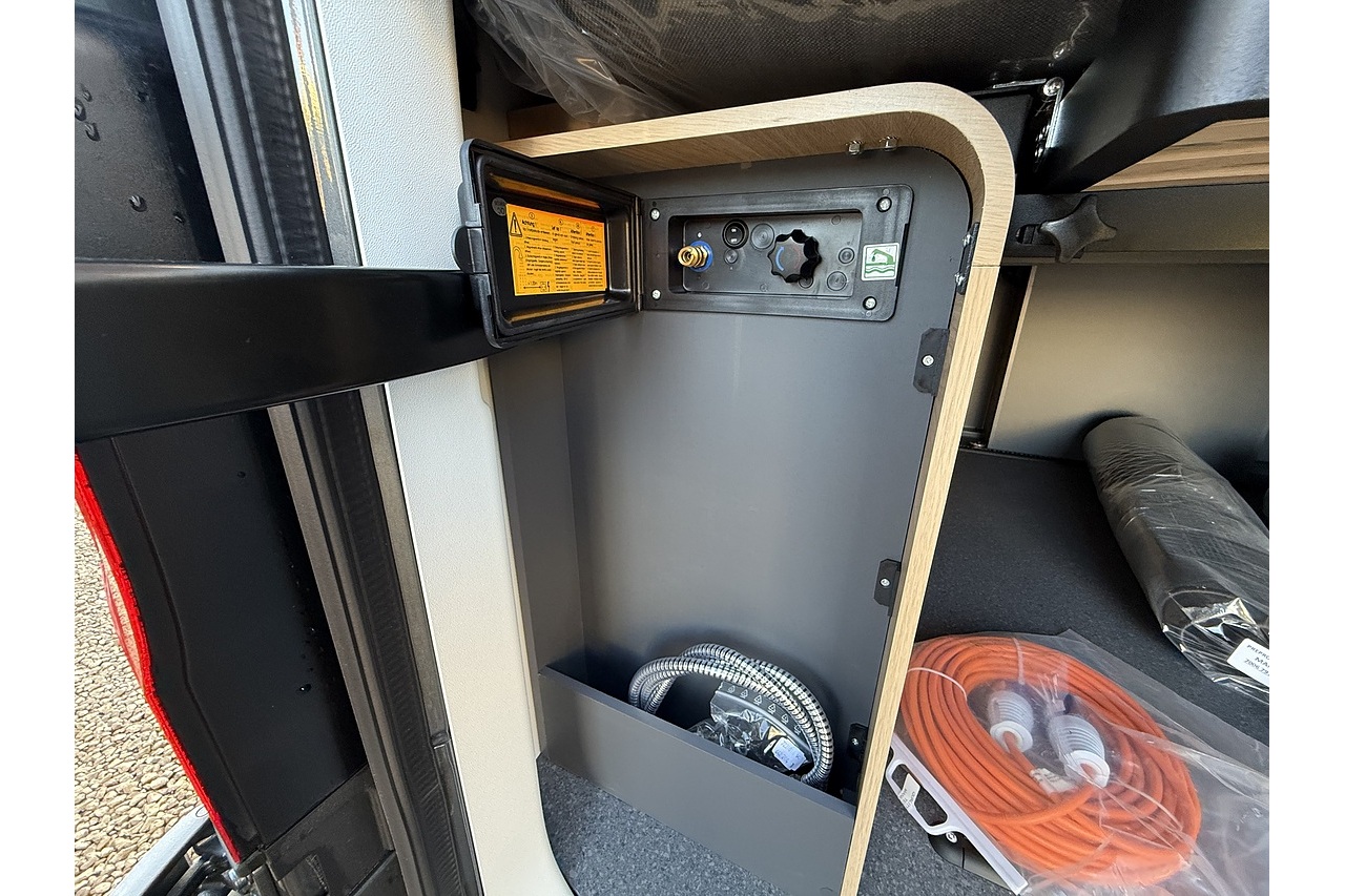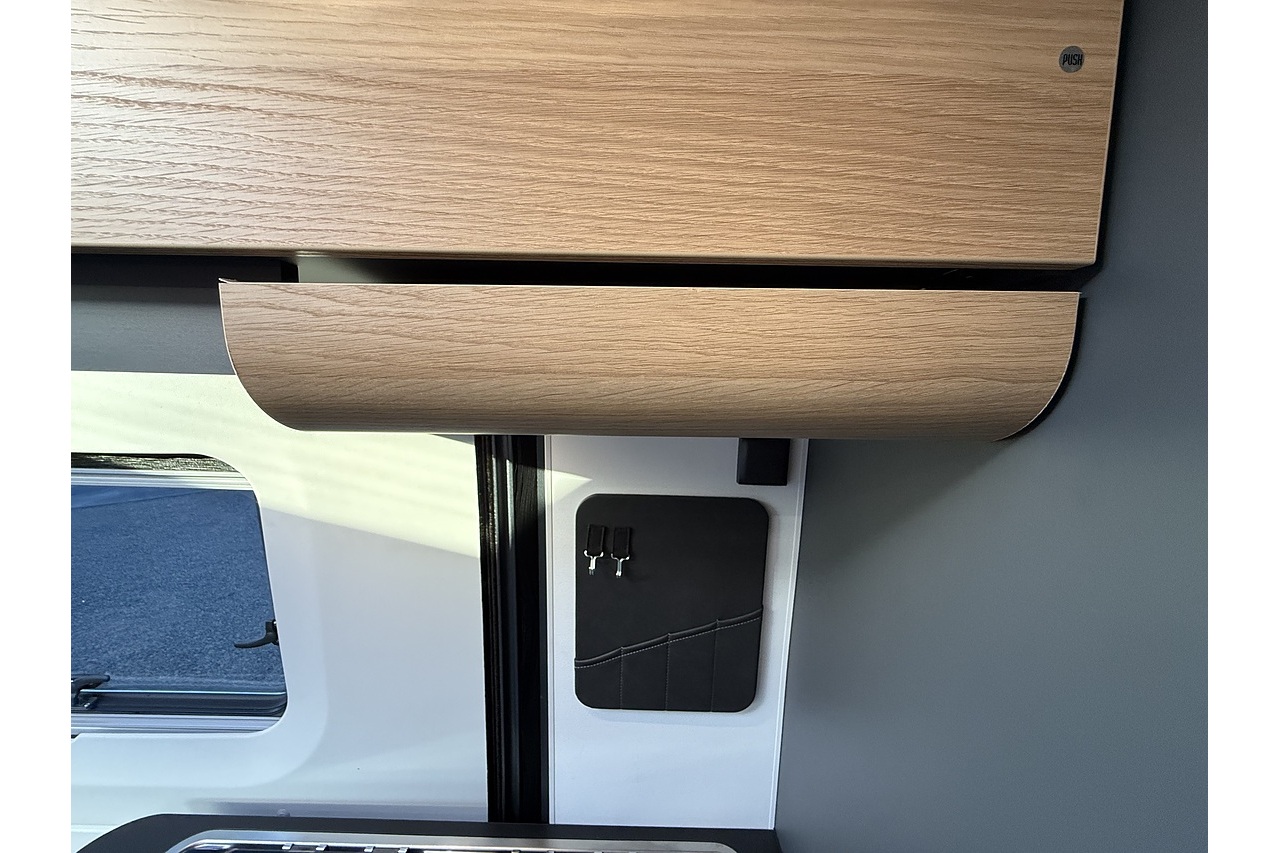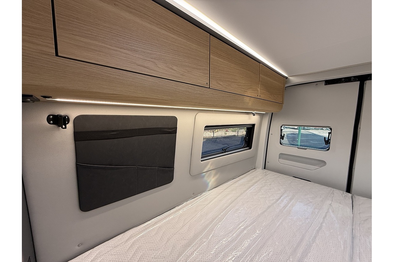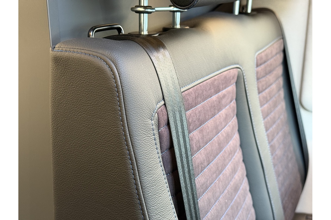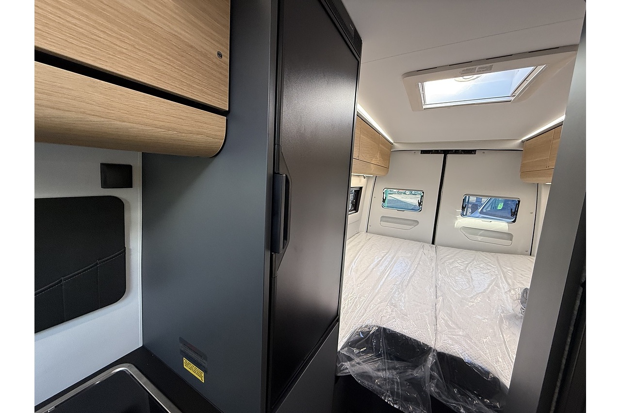 At the rear, the SLB layout features longitudinal twin single beds, offering superior comfort and access. These can be easily combined to create a large king-size bed, making the layout ideal for couples who want flexible sleeping arrangements. Premium finishes, smart storage and Adria’s modern styling give the interior a luxurious and open feel.