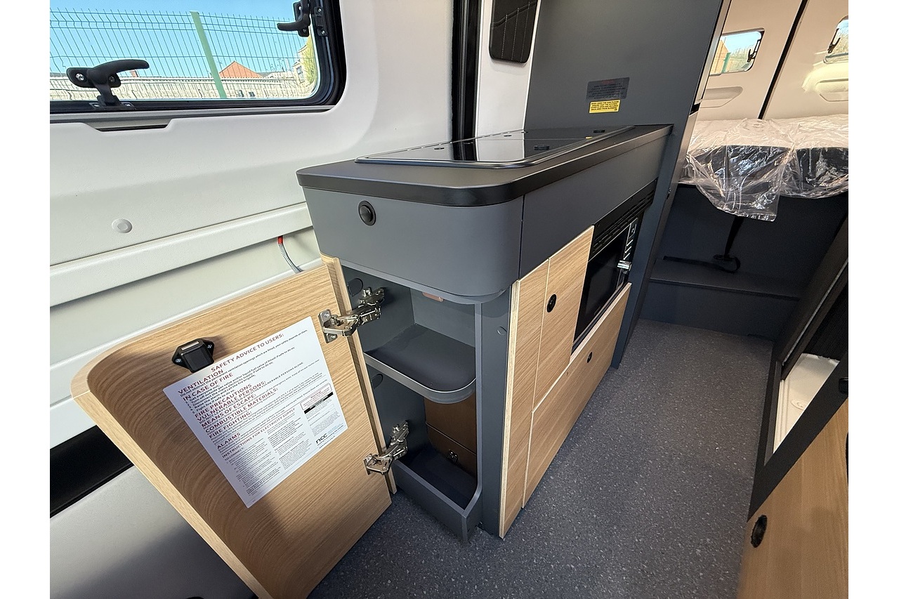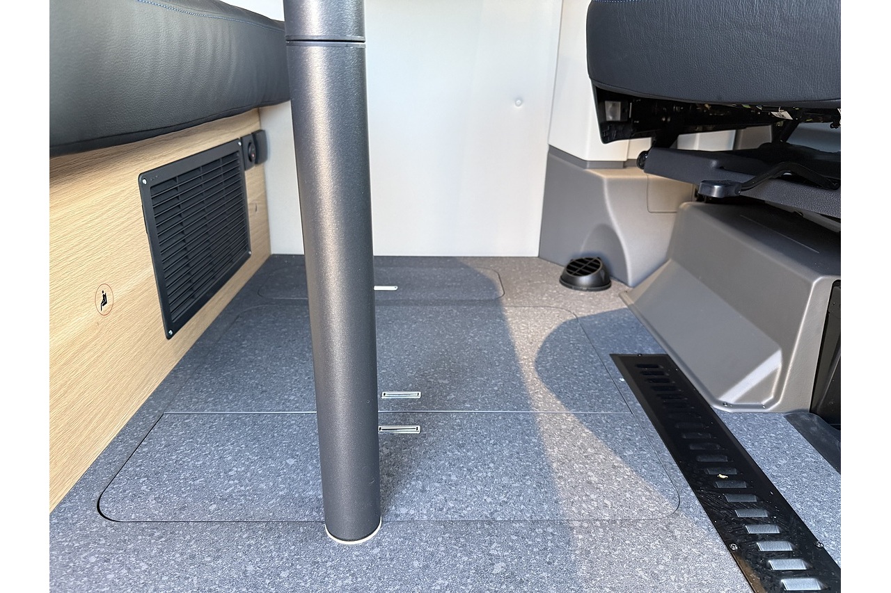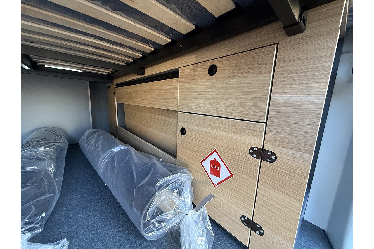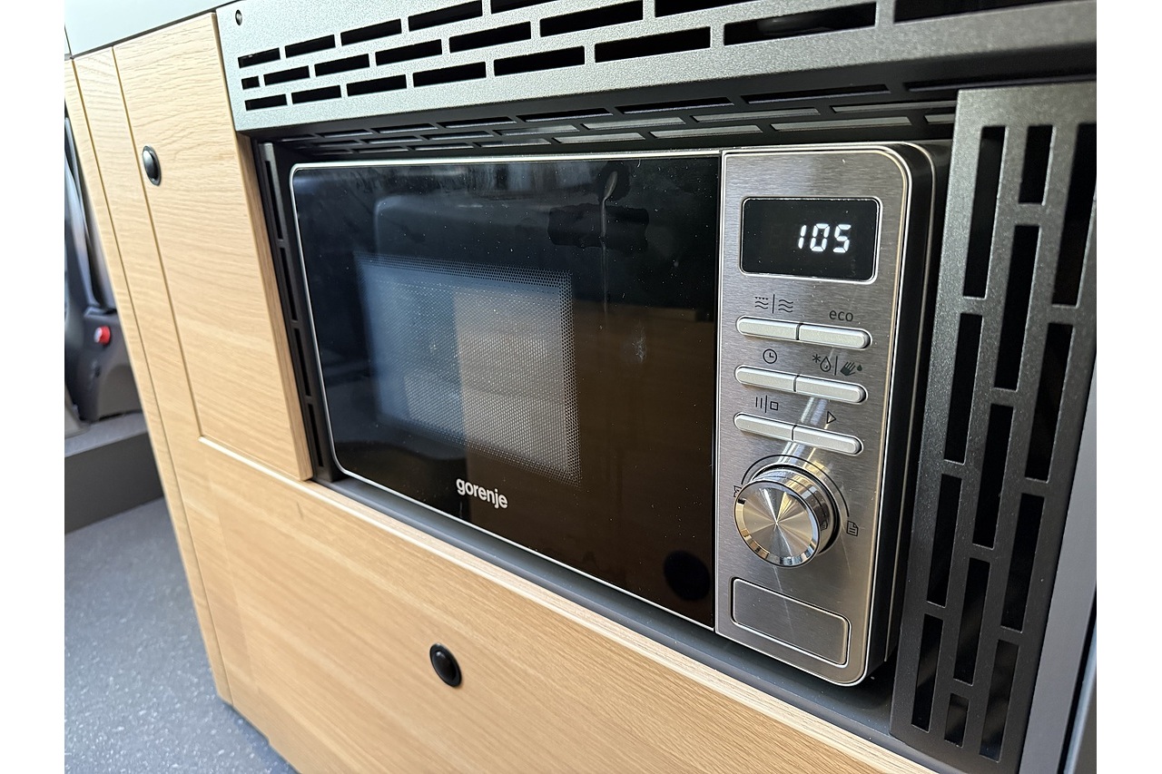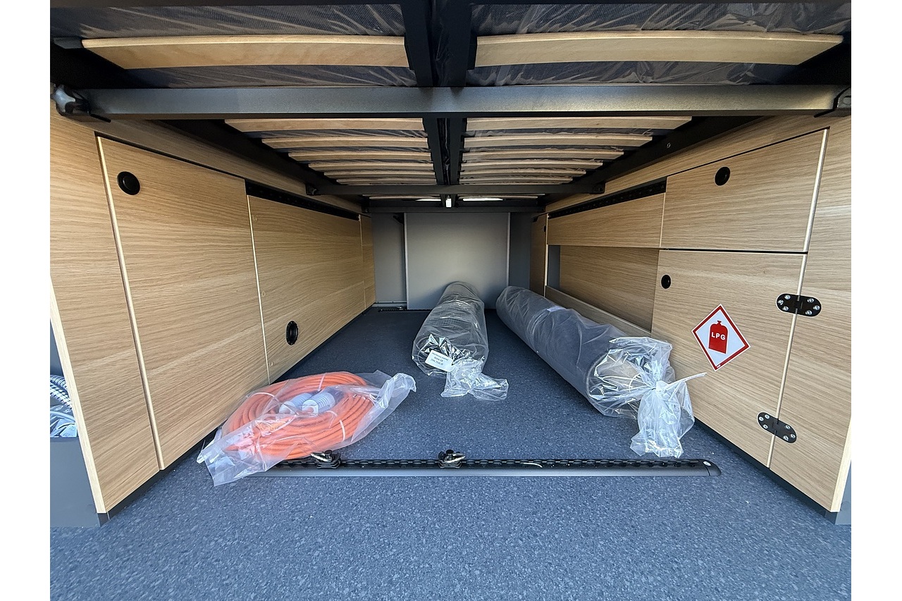 At the rear, the SLB layout features longitudinal twin single beds, offering superior comfort and access. These can be easily combined to create a large king-size bed, making the layout ideal for couples who want flexible sleeping arrangements. Premium finishes, smart storage and Adria’s modern styling give the interior a luxurious and open feel.