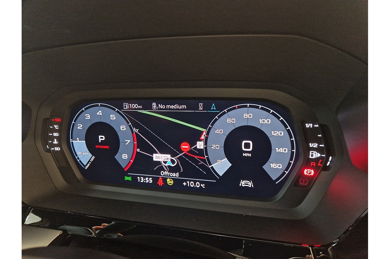 Audi Virtual Cockpit — a fully digital driver display with crisp graphics and customisable layouts for navigation, media, and driving info.
