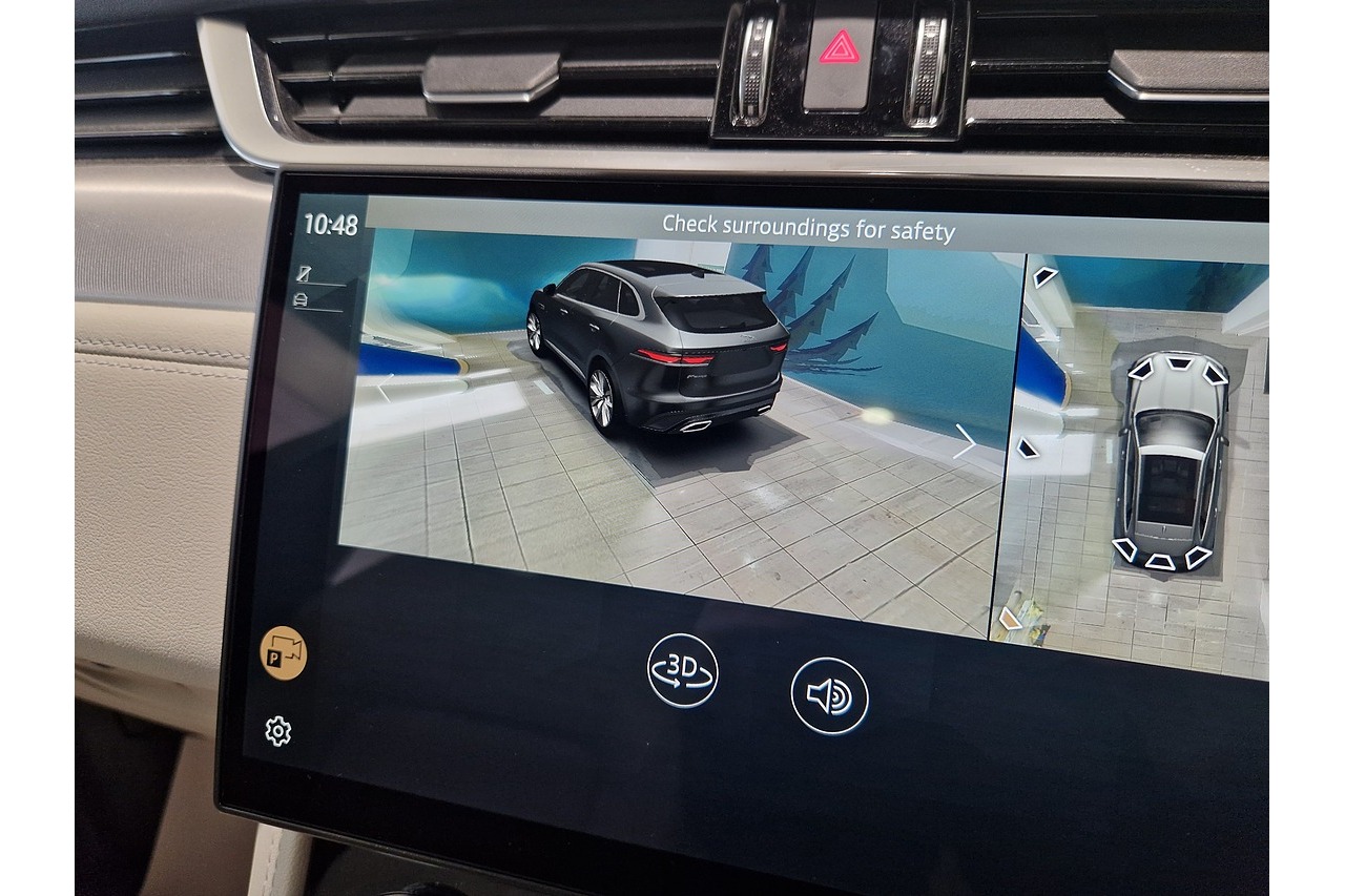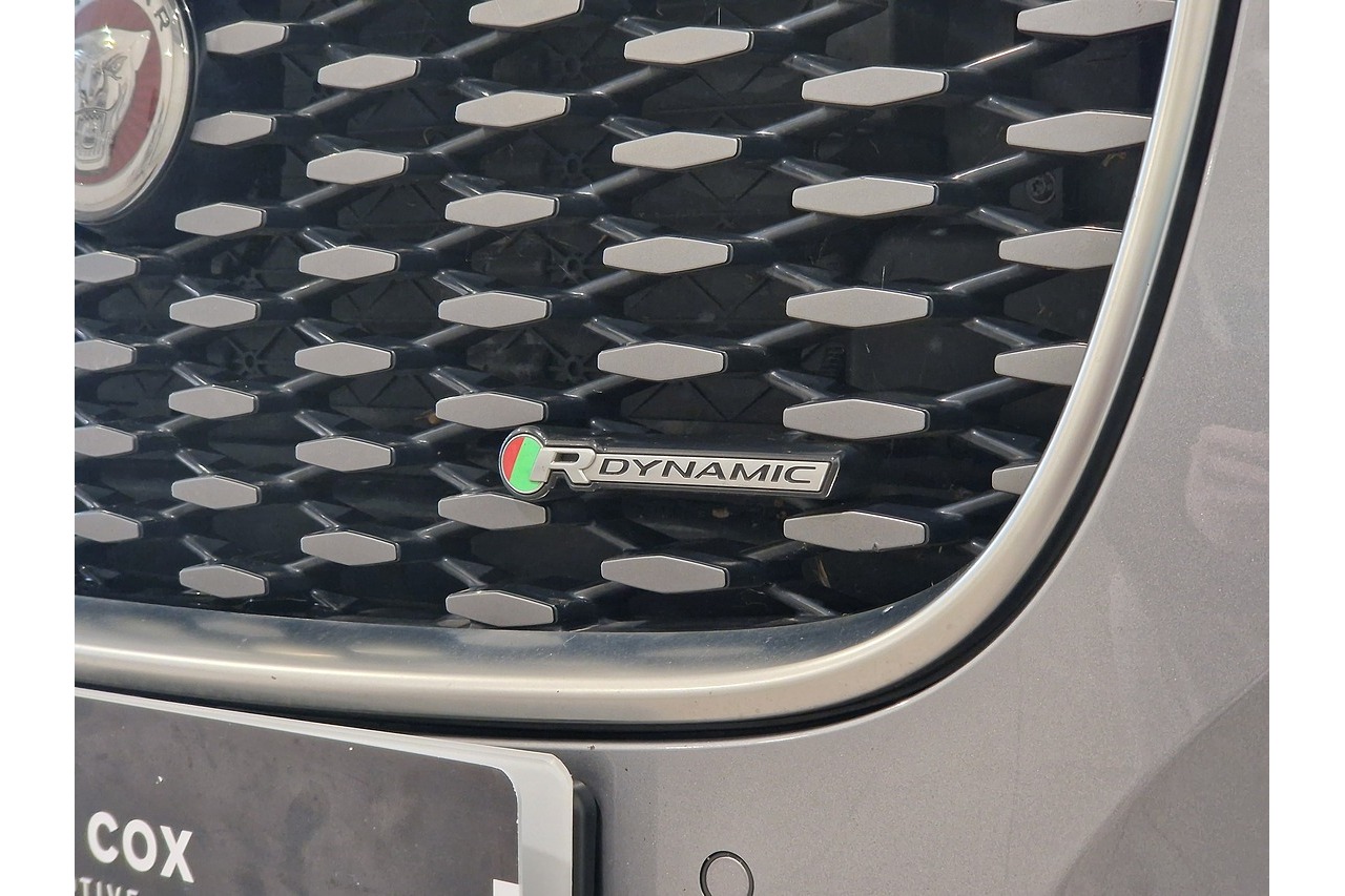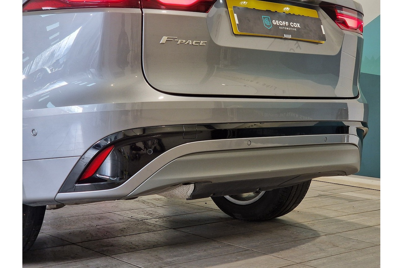 R‑Dynamic SE design — Sporty body styling, dynamic front grille, satin chrome detailing, and eye‑catching alloy wheels give this F‑PACE a striking, athletic presence.
