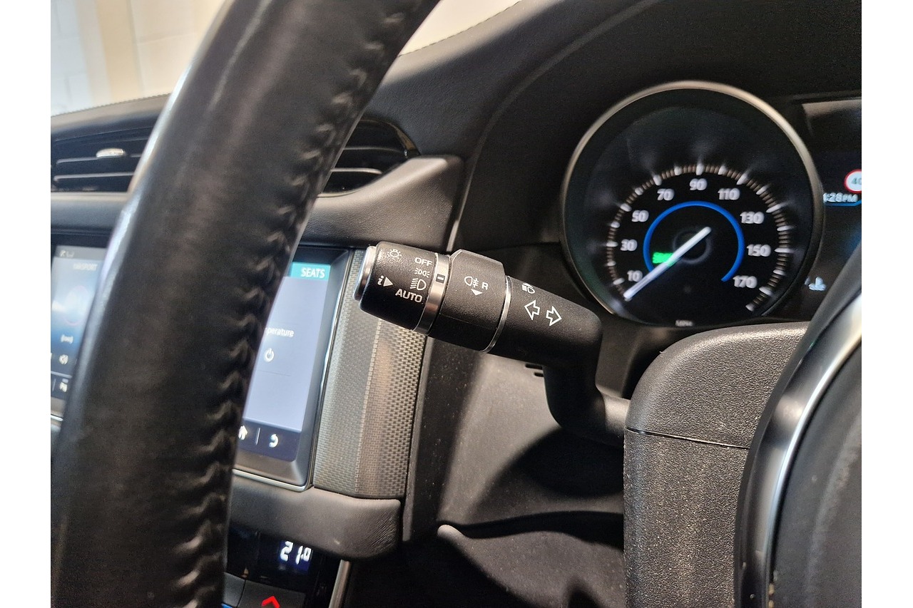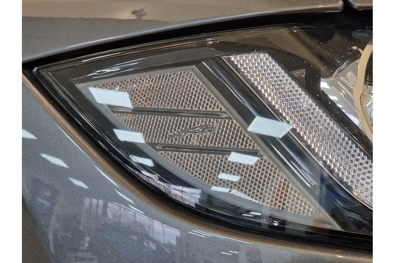 Elegant exterior styling with distinctive Jaguar grille, LED headlights, and 18-inch alloy wheels.