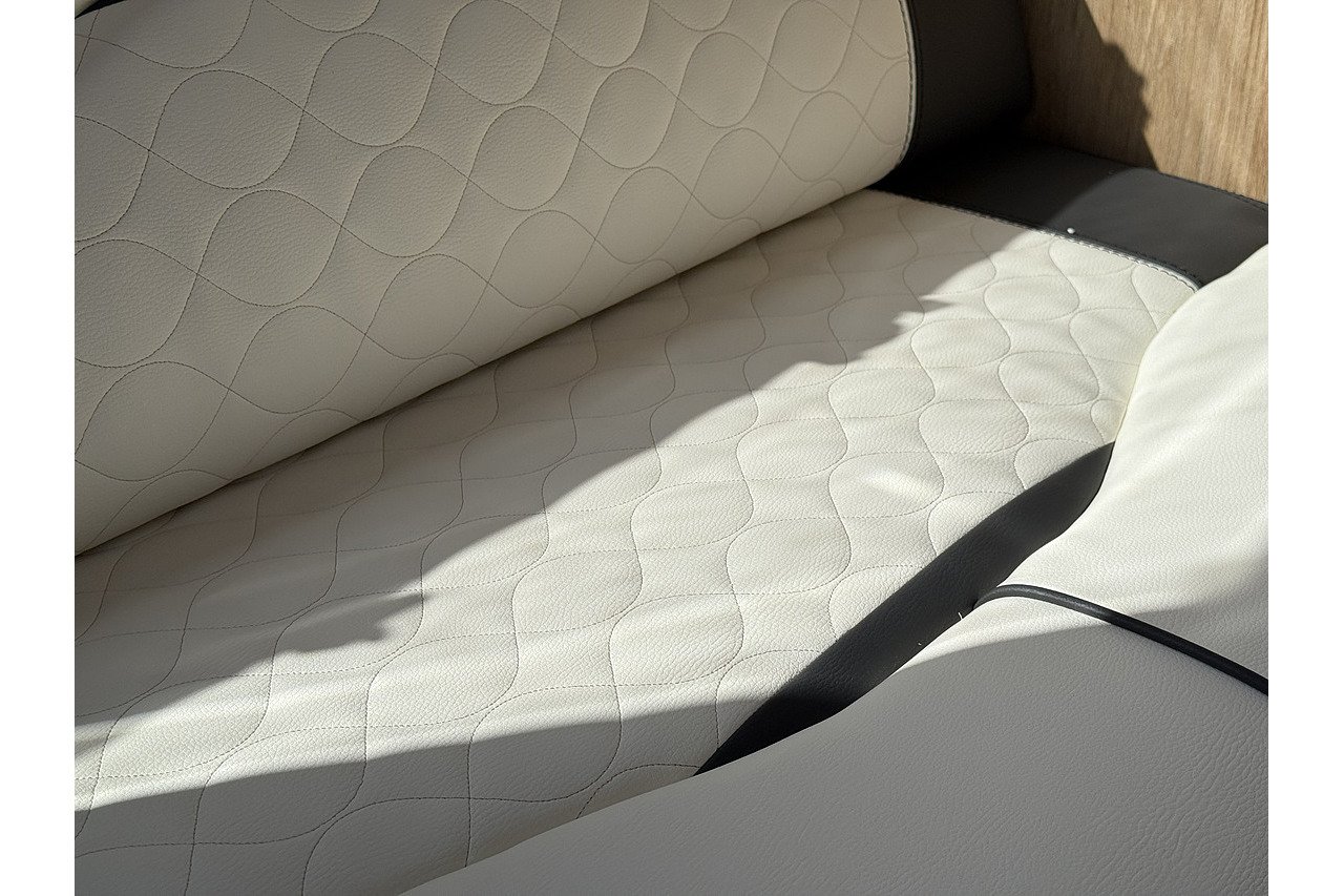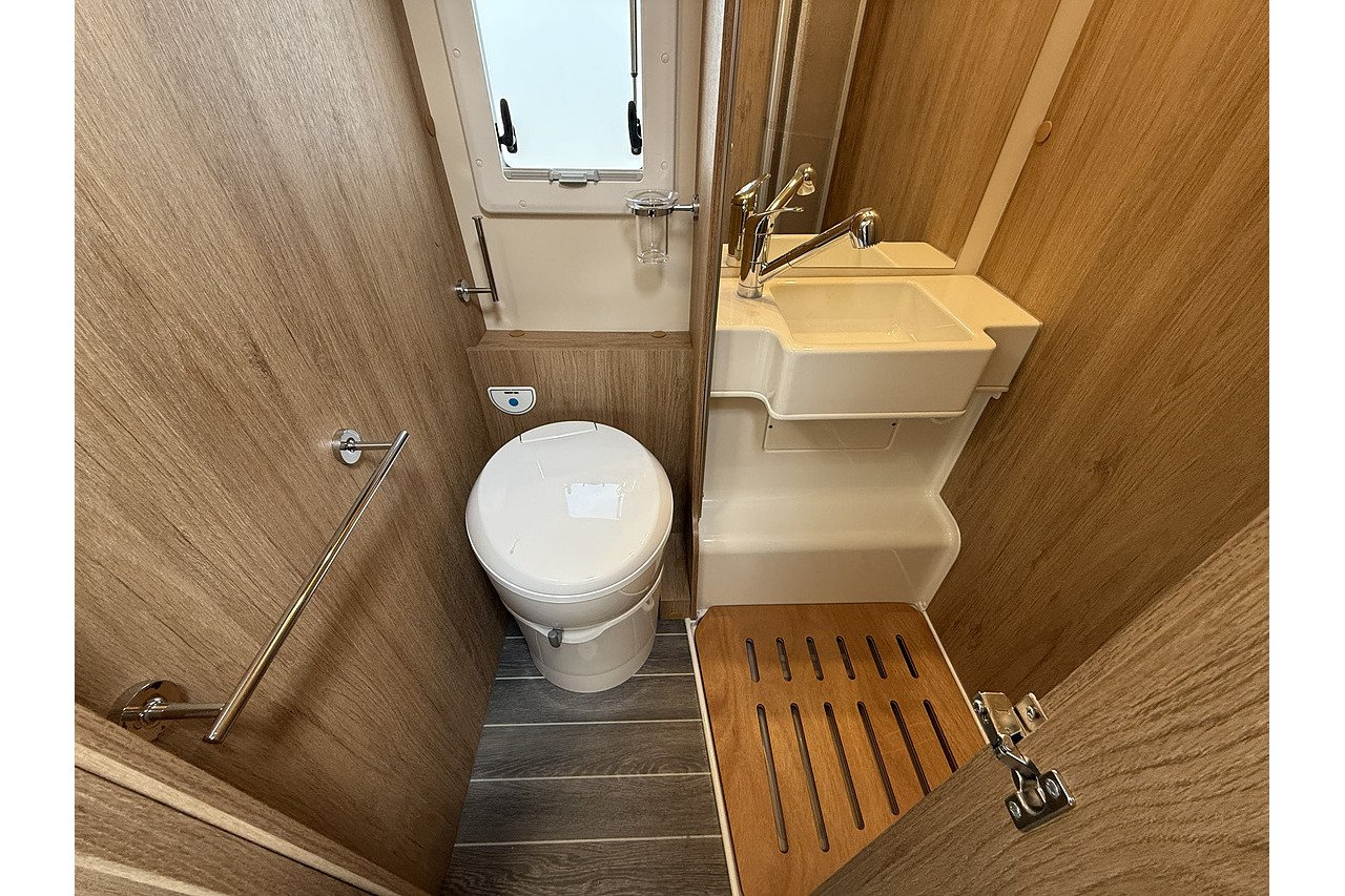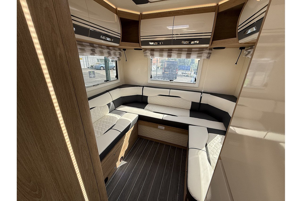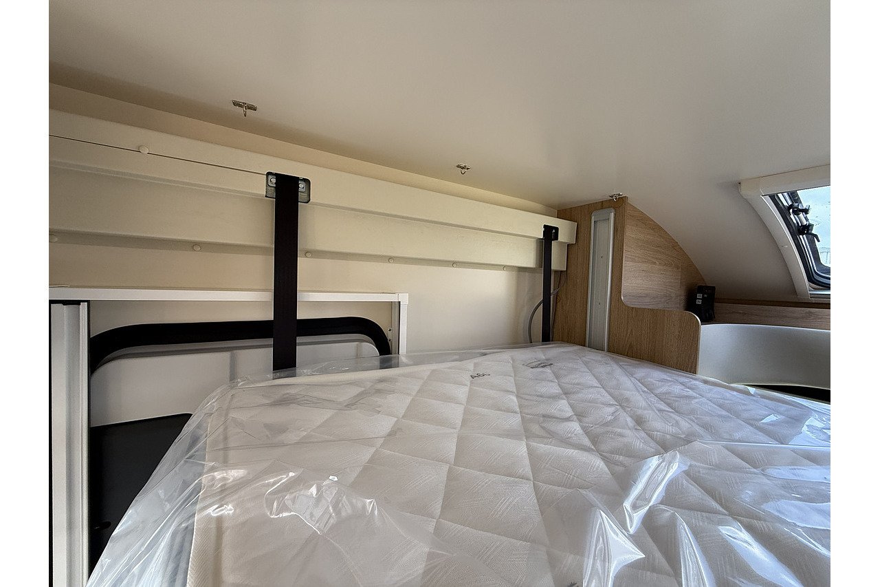 Inside, the 747 impresses with its spacious rear lounge, a true hallmark of this model. This large and comfortable area provides ample room for relaxing during the day and converts effortlessly into a king-size double bed at night. The front dinette adds extra living space and houses a convenient electric drop-down bed, creating sleeping accommodation for up to six people – perfect for families or those who enjoy hosting guests.
