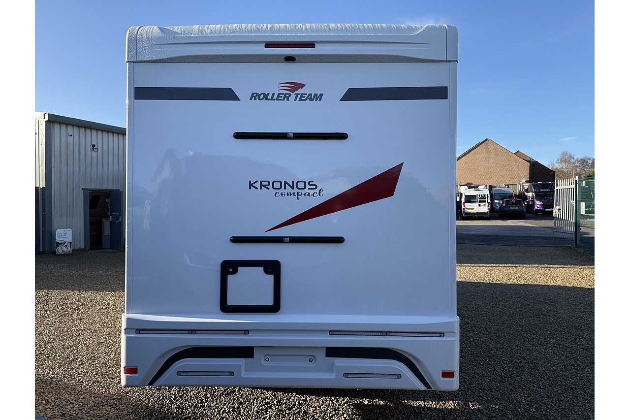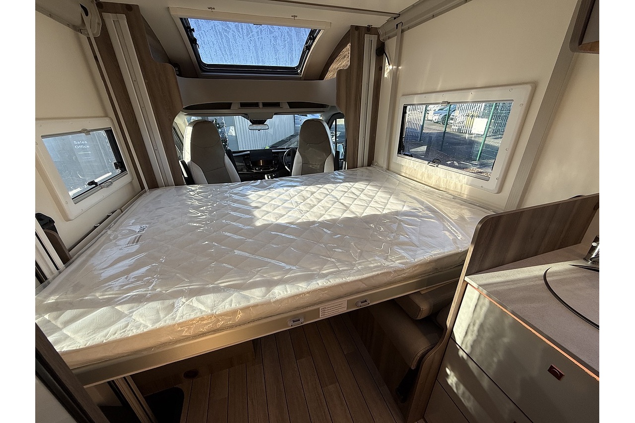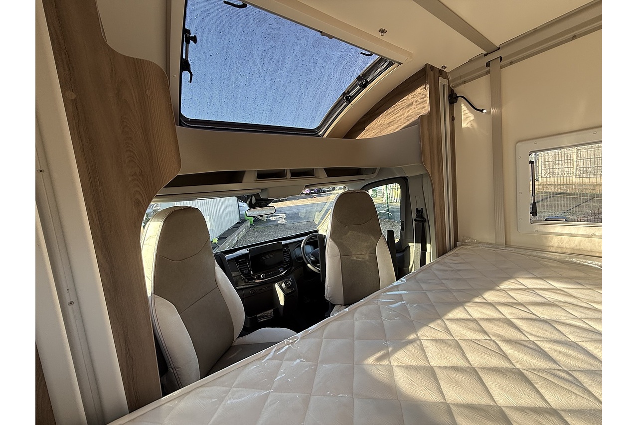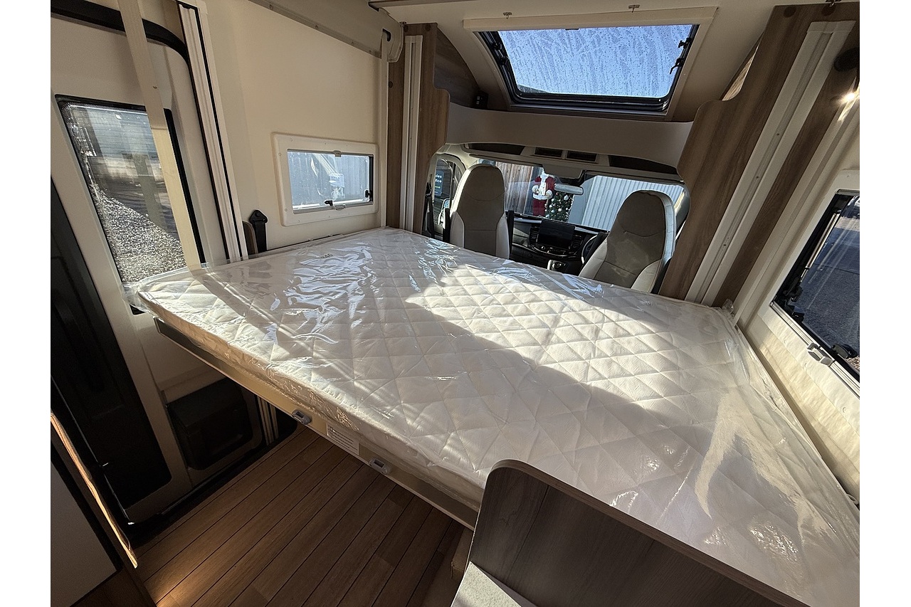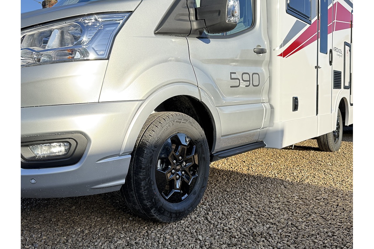 The 2026 Roller Team Kronos Compact 590 offers clever space utilisation in a slim coachbuilt body, built on the Ford Transit 2.0L 165BHP Automatic for smooth, confident driving. Under 6 m in length but impressively spacious inside, this layout features a drop-down fixed double bed above the open dinette, maximising living space without compromising sleeping comfort.