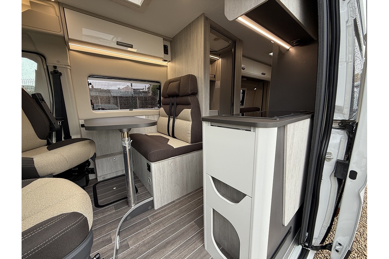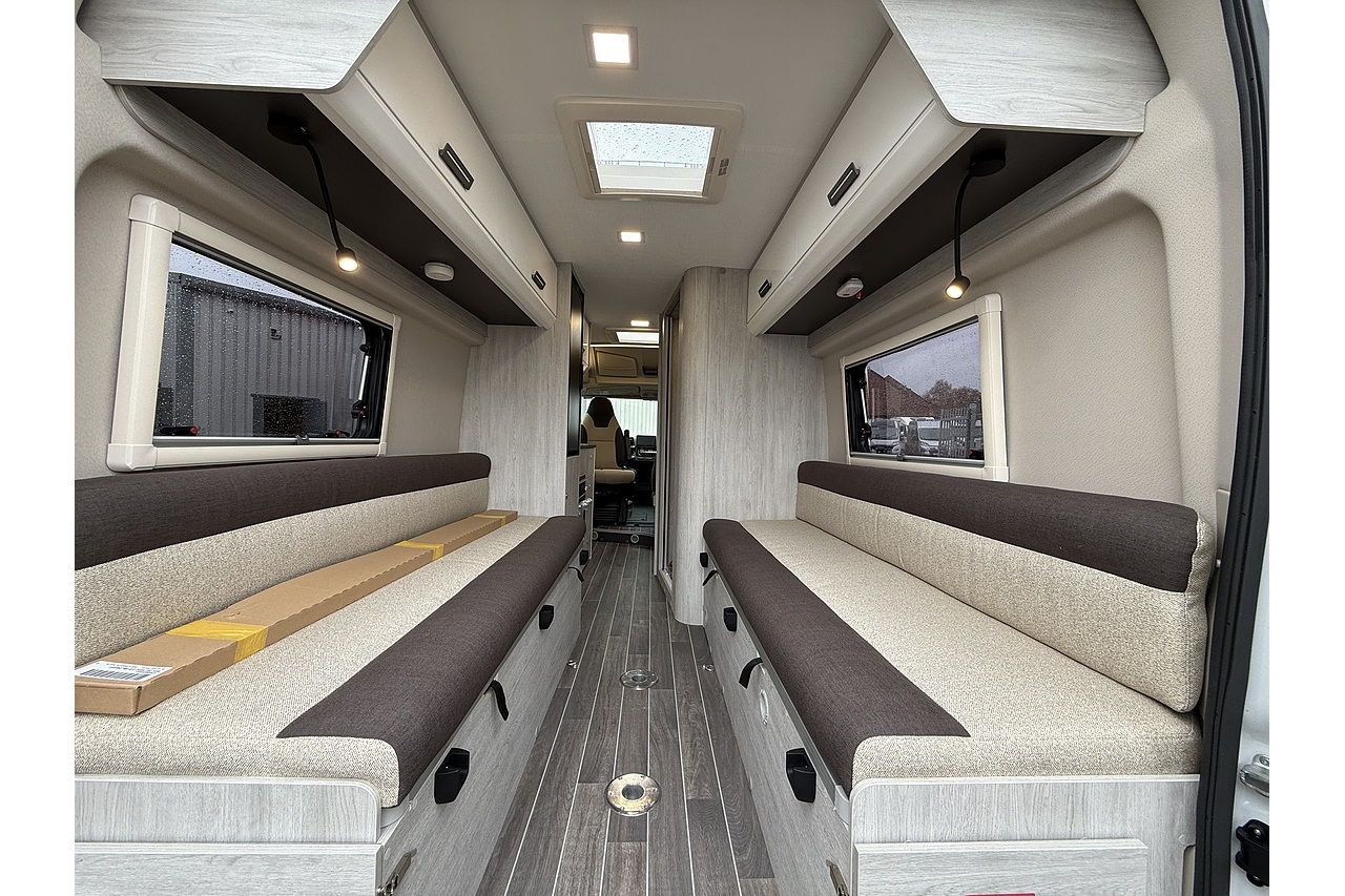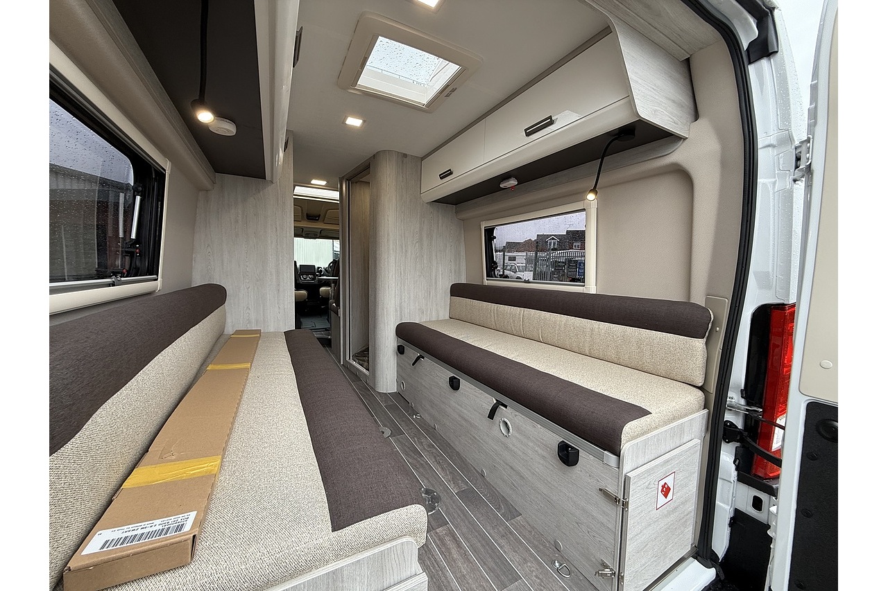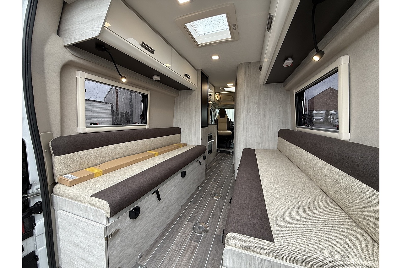 The 2026 Roller Team Livingstone DUO delivers an incredibly versatile and comfortable campervan layout, built on the Automatic Fiat Ducato (2.2L 140BHP) for smooth, stress-free driving. Perfect for couples or solo explorers, its welcoming rear lounge offers a bright and spacious relaxation area that converts quickly into a comfortable double bed at night.