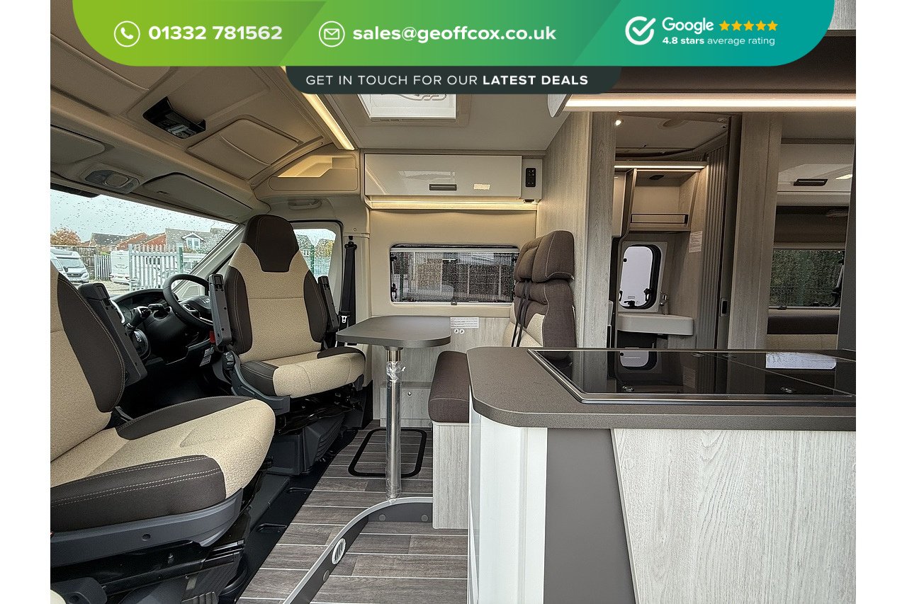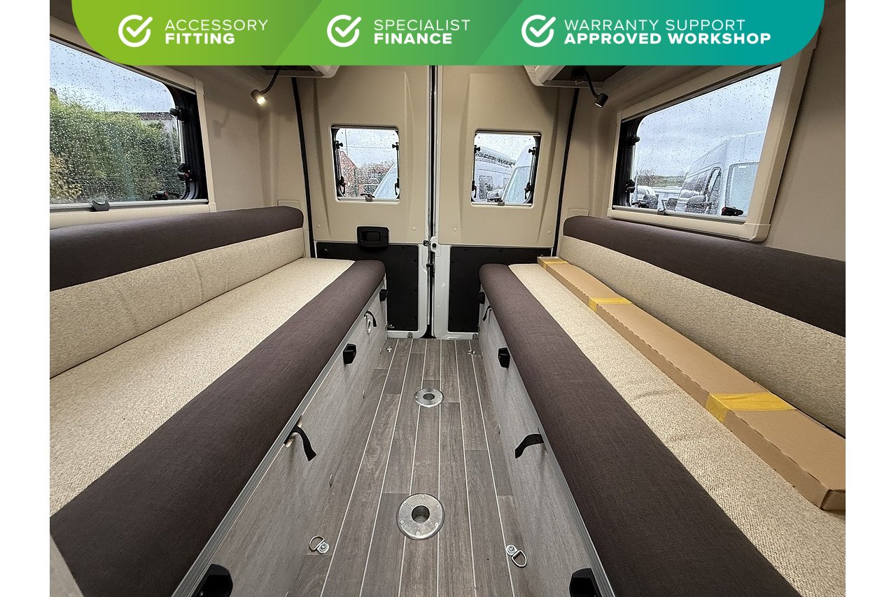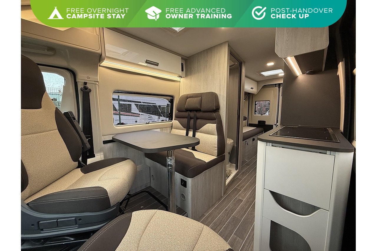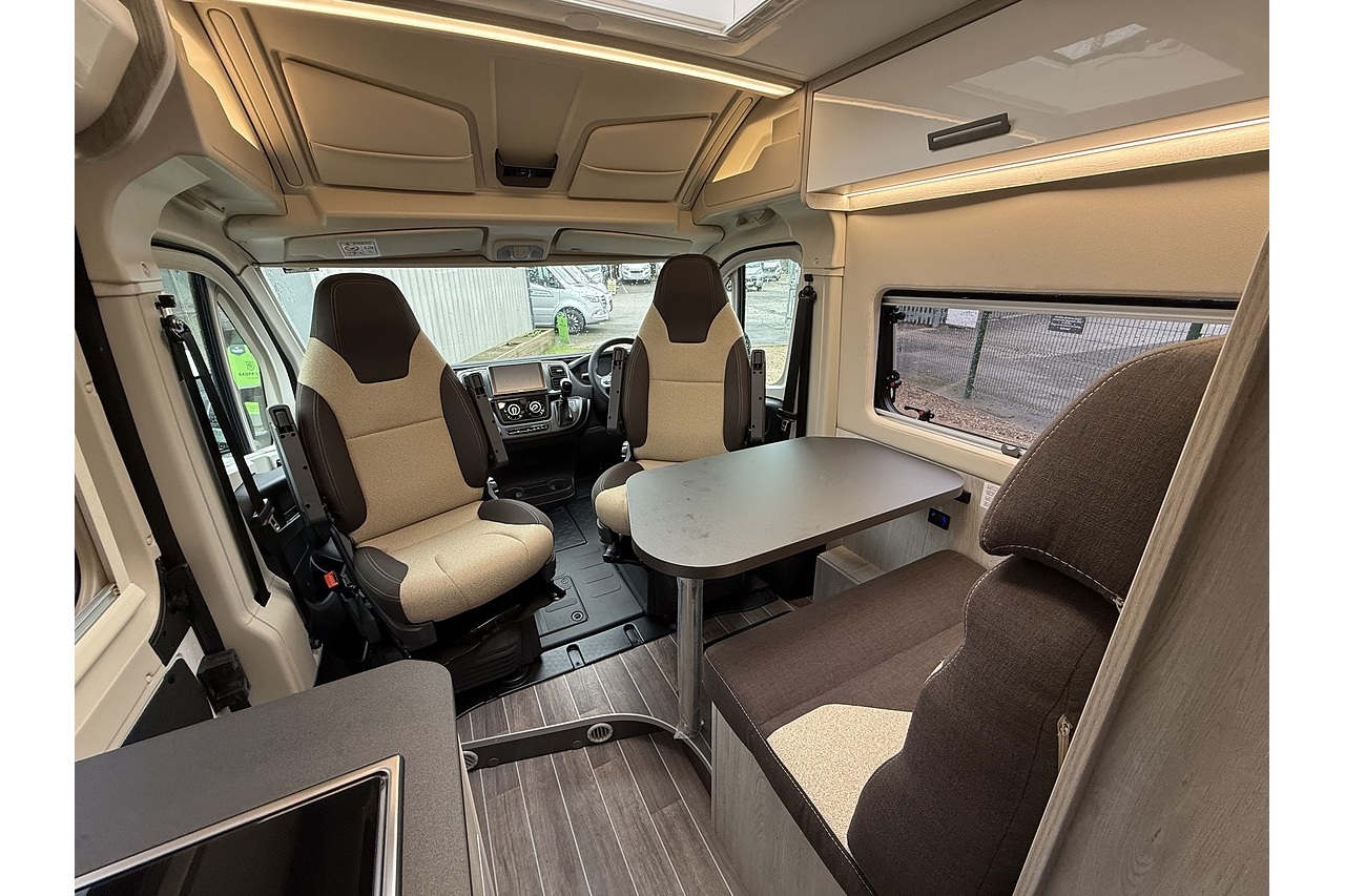 The 2026 Roller Team Livingstone DUO delivers an incredibly versatile and comfortable campervan layout, built on the Automatic Fiat Ducato (2.2L 140BHP) for smooth, stress-free driving. Perfect for couples or solo explorers, its welcoming rear lounge offers a bright and spacious relaxation area that converts quickly into a comfortable double bed at night.