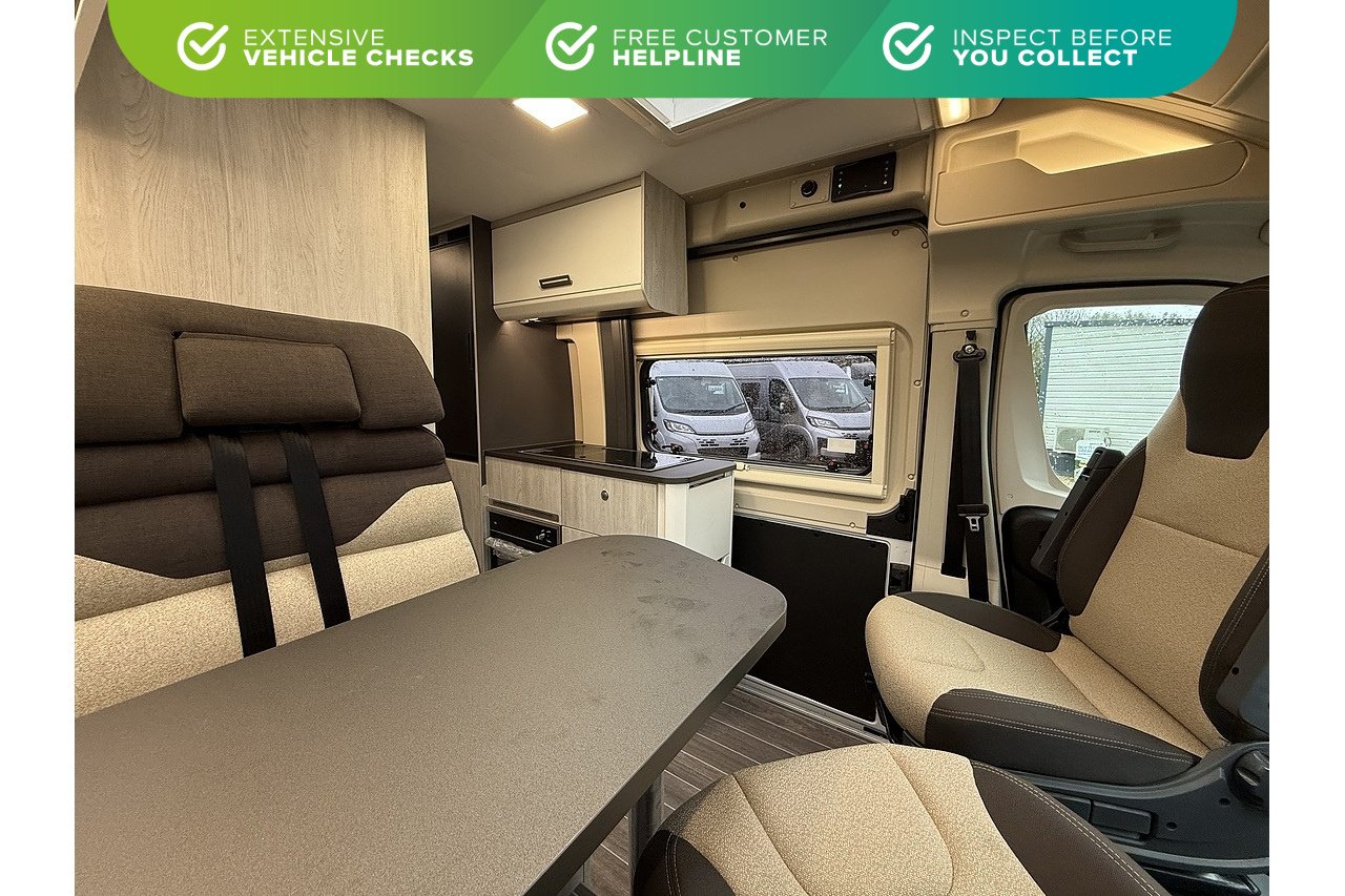 Fitted extras included: Thule awning & Livingstone Pack (worth £995) inc. 200W Solar Panel, pleated cab blinds, awning light, MidiHeiki skylight & electric step.