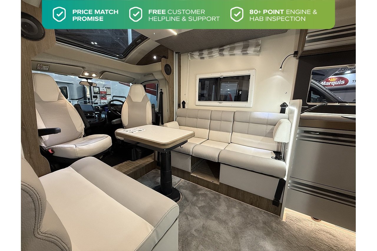 The 2026 Roller Team T-Line 590 is the ultimate combination of compact agility and high-end comfort, built on the refined Fiat Ducato 2.2 140BHP Automatic or Manual chassis. Measuring under 6 metres in length, this clever 4-berth motorhome offers the perfect balance of everyday driveability and luxurious interior design — now enhanced for 2026 with a striking black cab and new exterior decals.