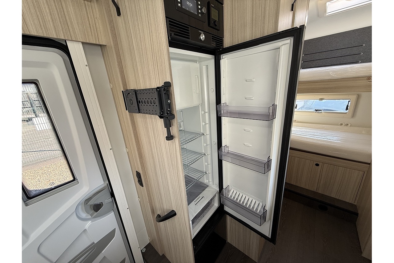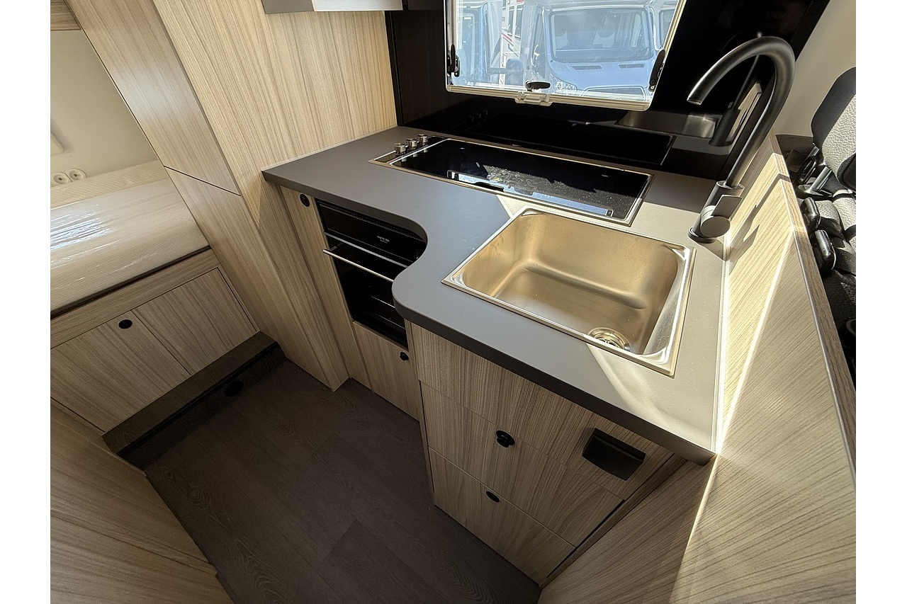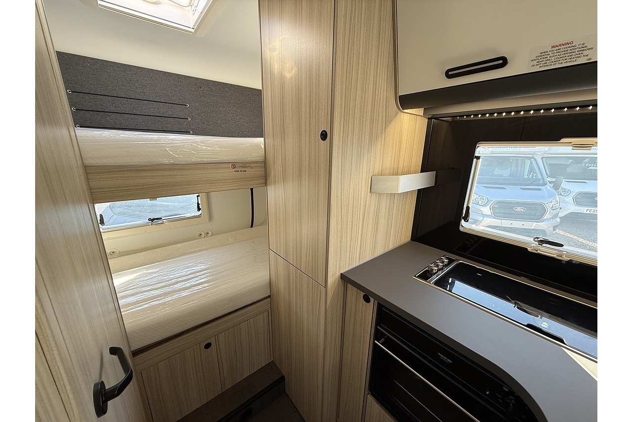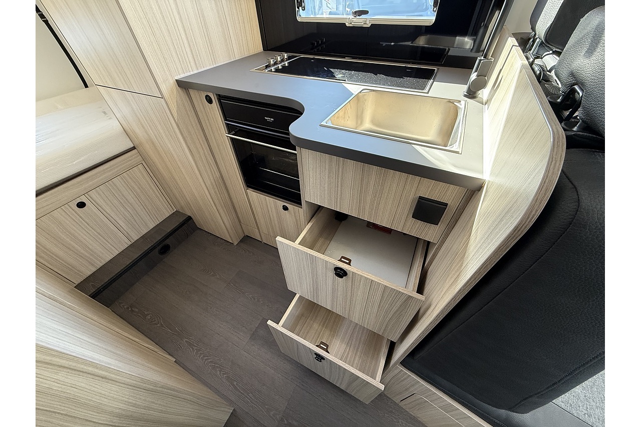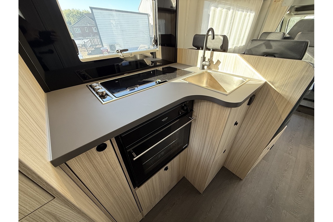 Fully equipped kitchen – Includes a 3-burner hob, fridge, and sink for easy meal prep on the go.